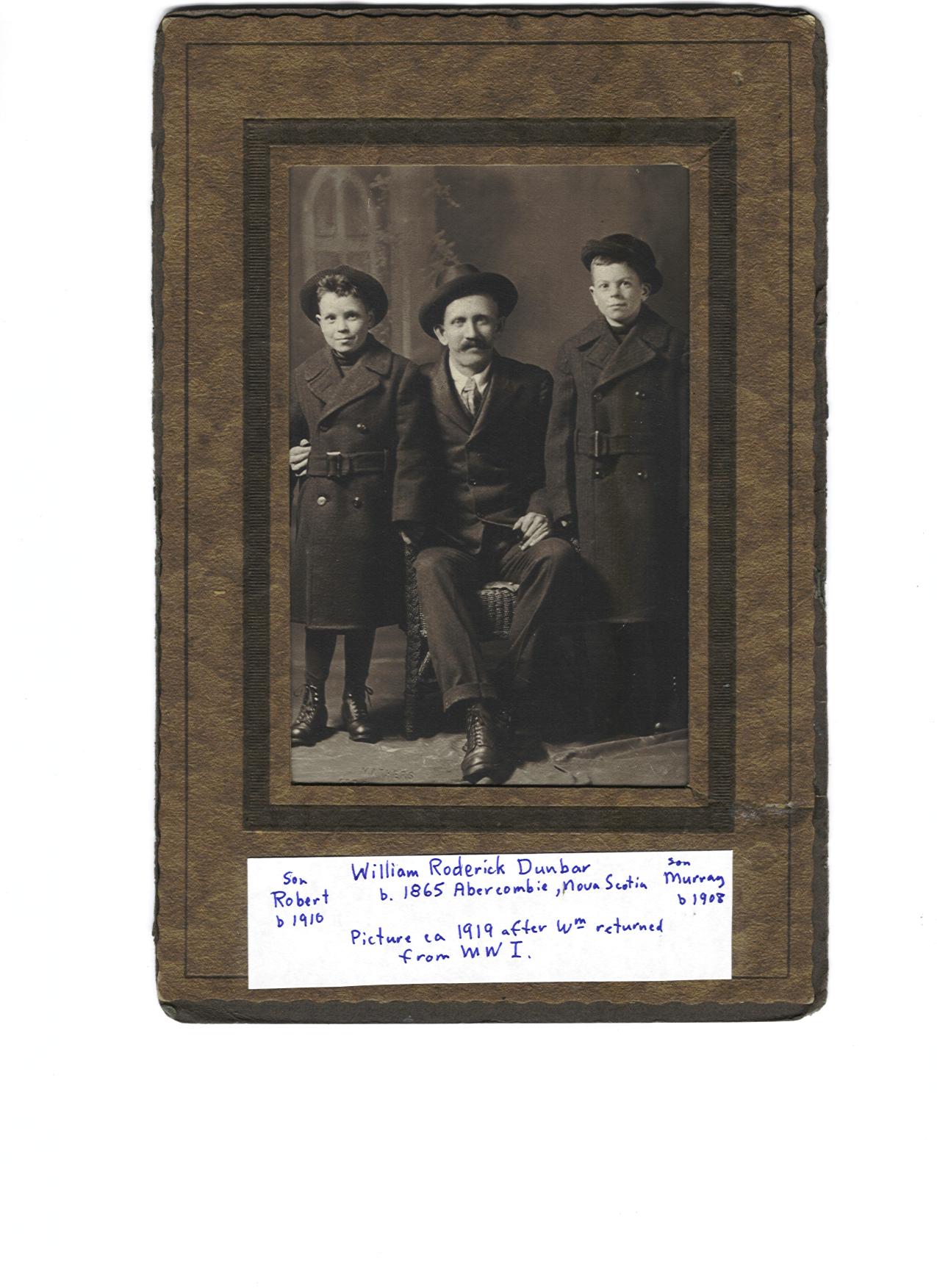 John William Dunbar (Seated Left) 1863-1952 Son John Marion Dunbar (seated right) Brother Frank (standing left) Franks son (standing right)